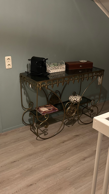 Ruime en gezellige privéruimte en aparte badkamer bereikbaar via een eigen hal met trapopgang. Kamer voorzien van onder meer TV, WIFI en koelkastje. Er staat een heerlijk groot tweepersoonsbed met twee 1 persoonsdekbedden.